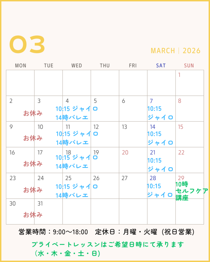 *プライベートレッスンは、水・木・金・土・日曜の、ご希望日時に承ります。